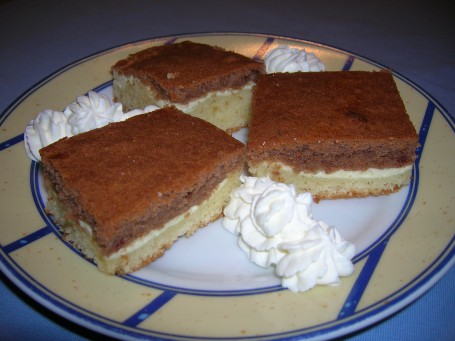 - Den dunklen Teig darüber streichen und die Form in die untere Hälfte des vorgeheizten Rohres, bei 160°C schieben.
