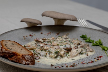 Als Beilage eignet sich ein Stück Bauernbrot oder auch Semmelknödel. Pilze sind der ideale Fleischersatz, da sie einen hohen Proteingehalt haben.
